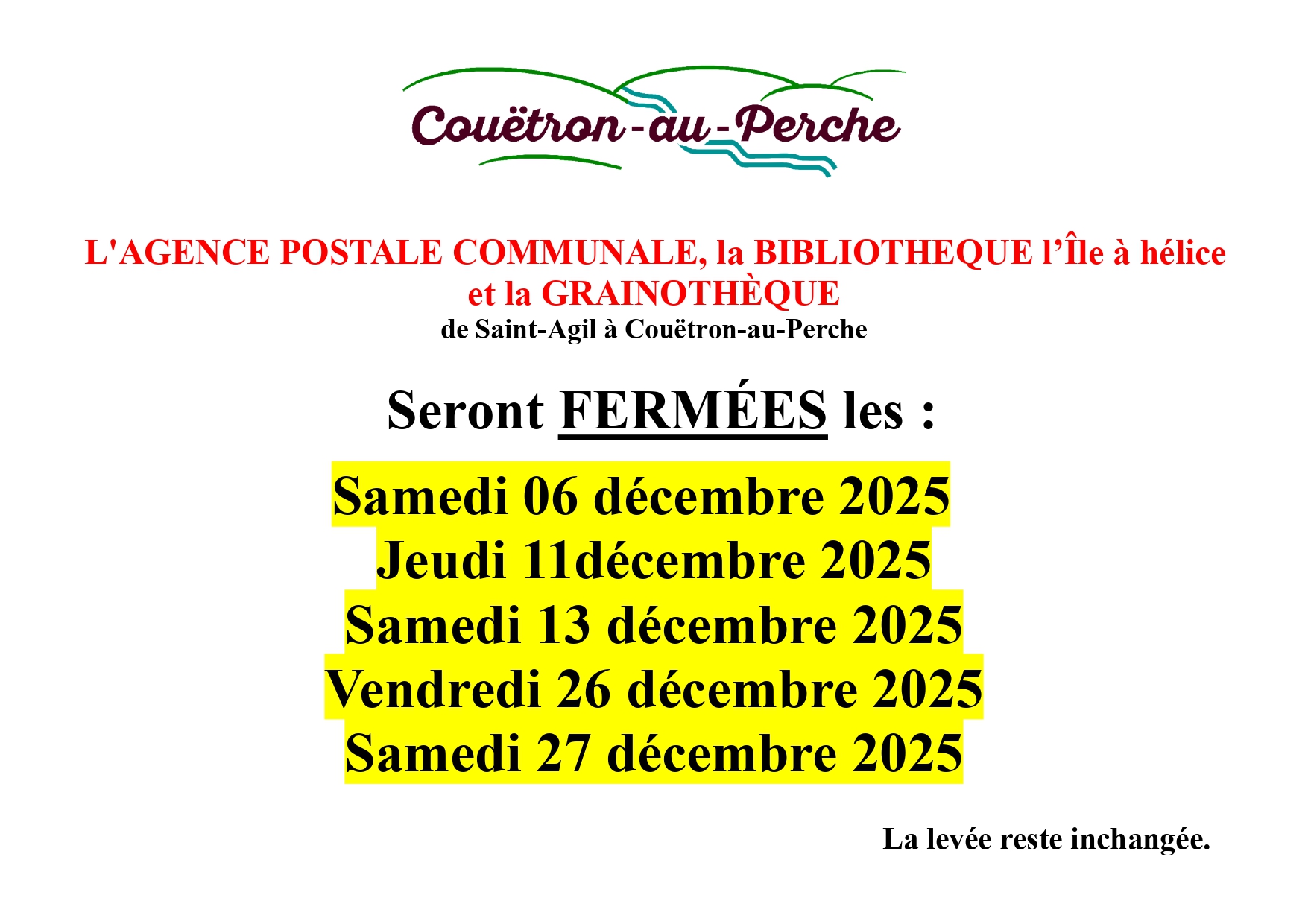 SAINT-AGIL : Mardi de 14h à 18h et Vendredi de 8h30 à 12h