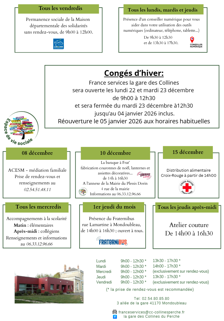 SOUDAY : Lundi, Mardi, Mercredi et Jeudi de 9h à 12h et Vendredi de 14h à 17h30