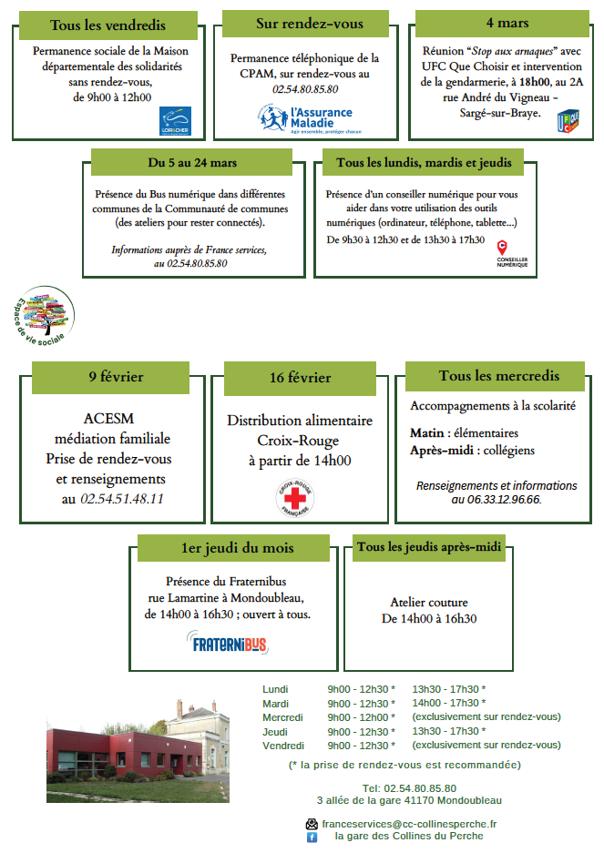 SOUDAY : Lundi, Mardi, Mercredi et Jeudi de 9h à 12h et Vendredi de 14h à 17h30