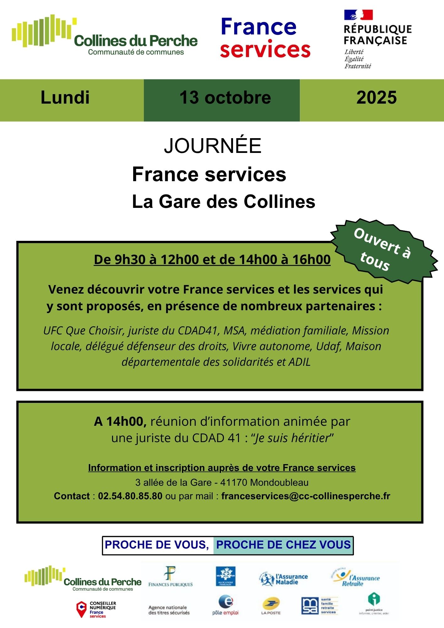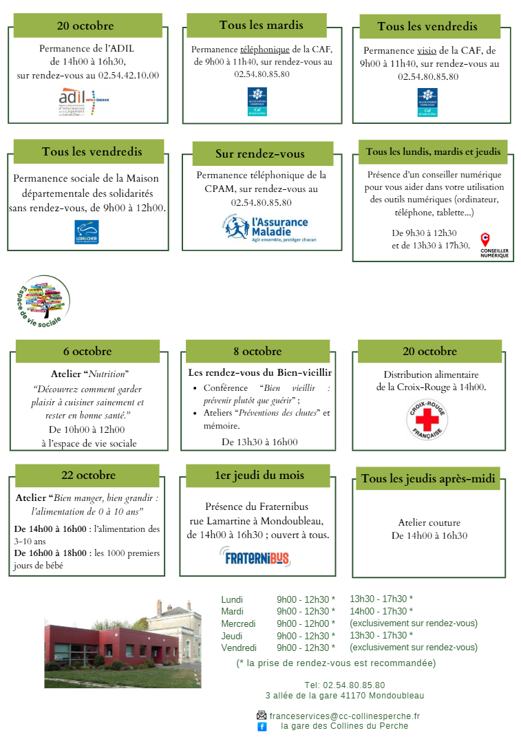 SOUDAY : Lundi, Mardi, Mercredi et Jeudi de 9h à 12h et Vendredi de 14h à 17h30