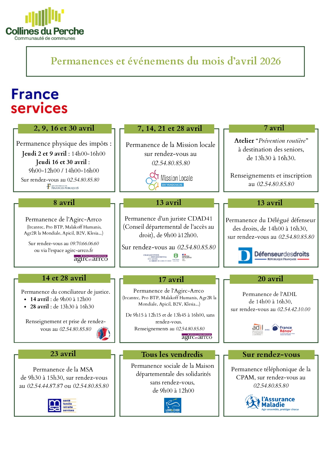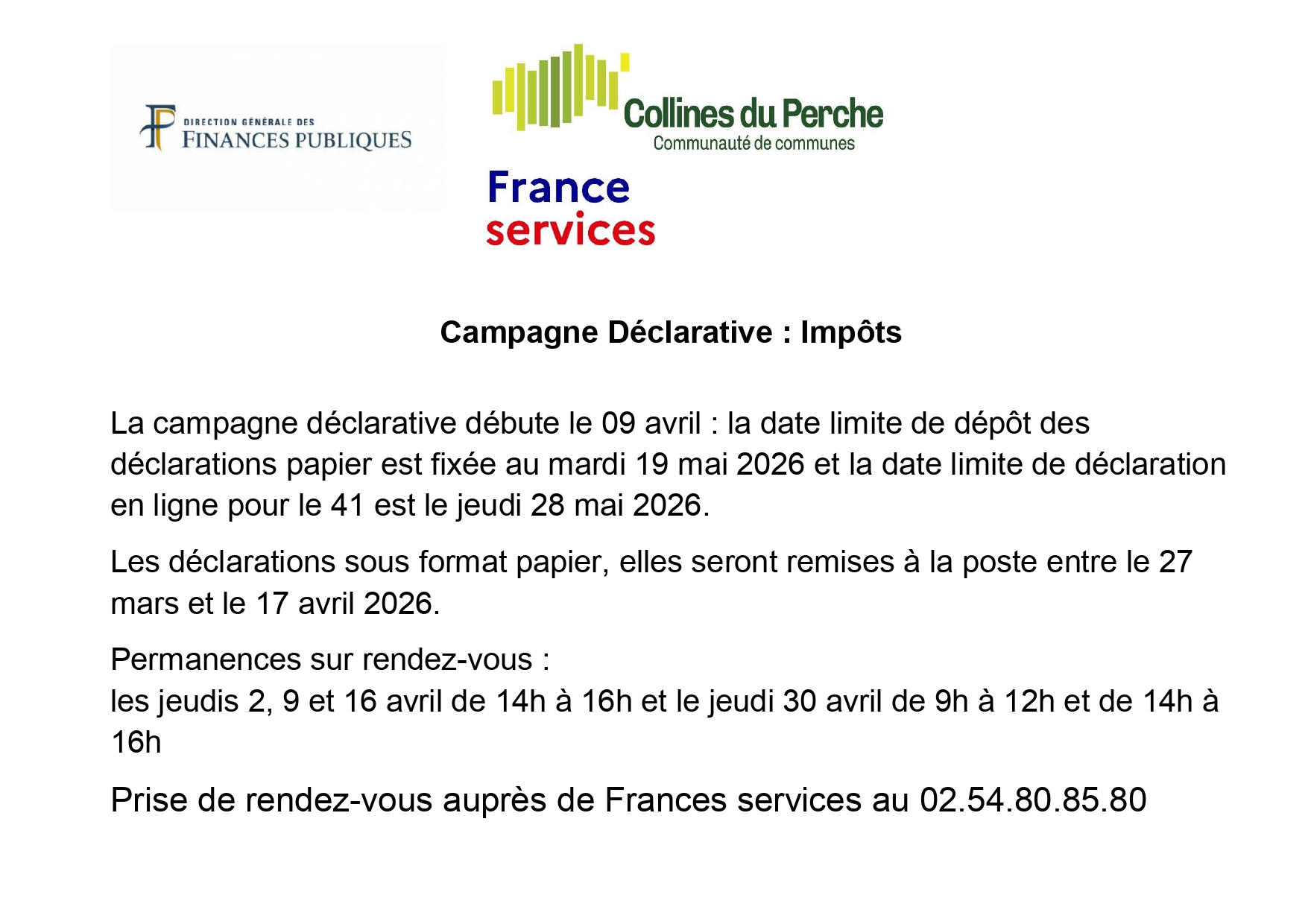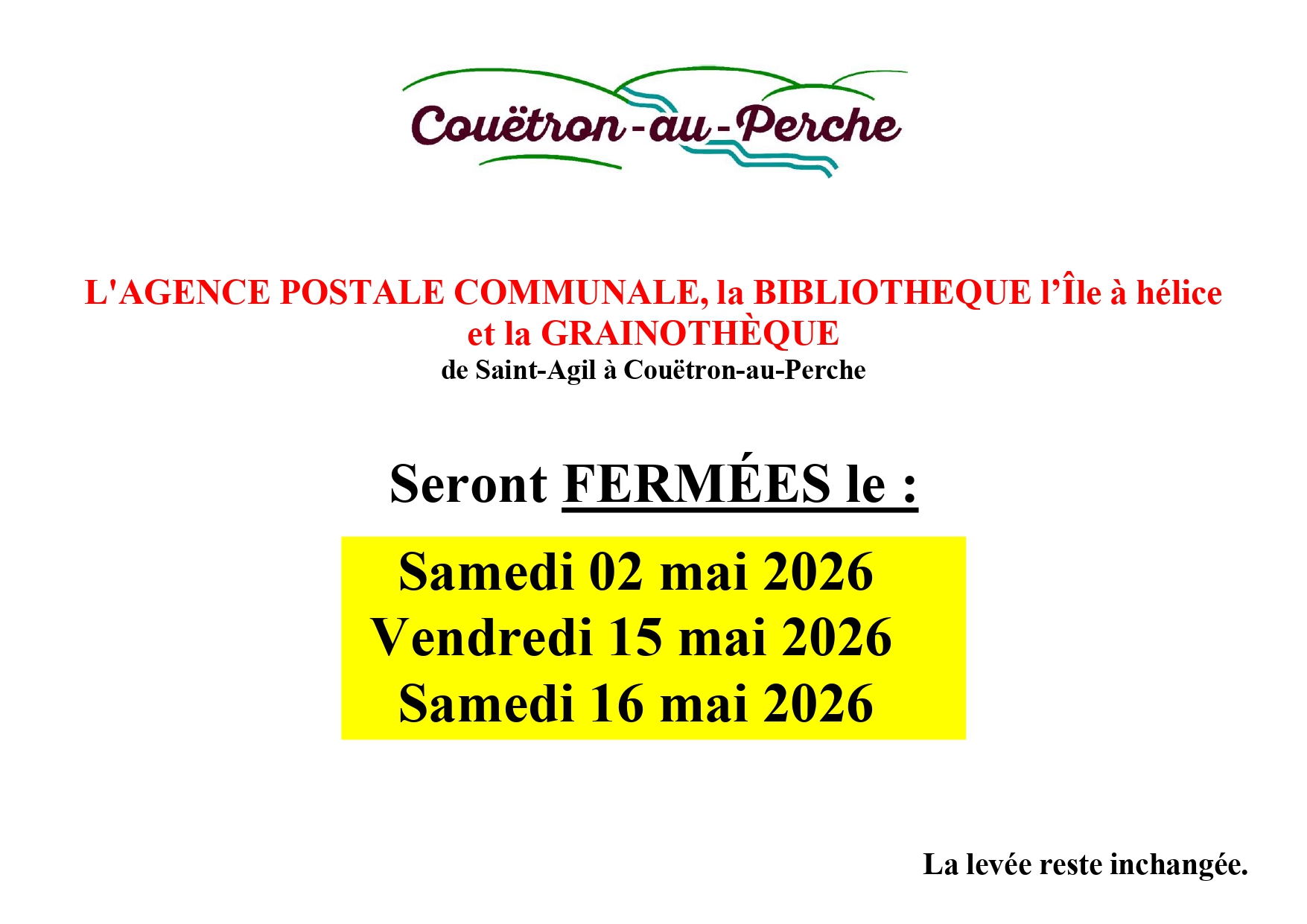 SAINT-AGIL : Mardi de 14h à 18h et Vendredi de 8h30 à 12h